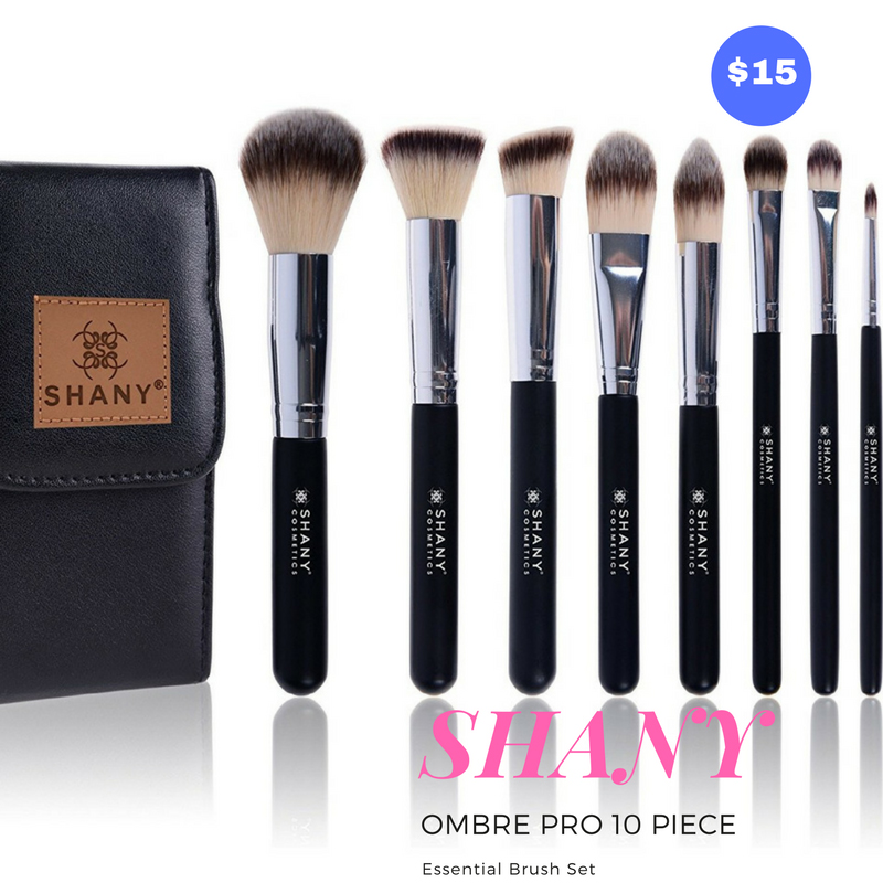 10. For excellent quality yet affordable brushes, we recommend the SHANY Ombre Pro 10 Piece Essential Brush Set with Travel Pouch, $15.