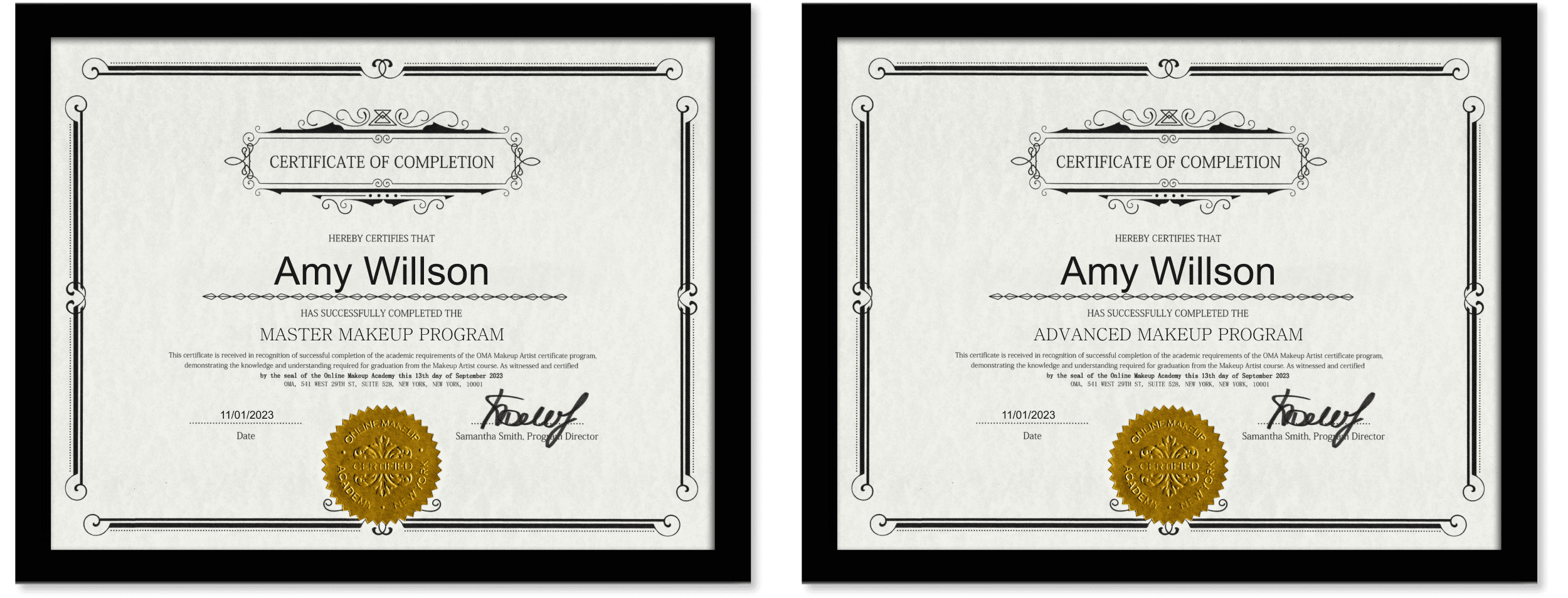 2. There are a total of 19 assignments to complete your certification in MUA Complete Training. Please submit before & after photos and description of each look.
