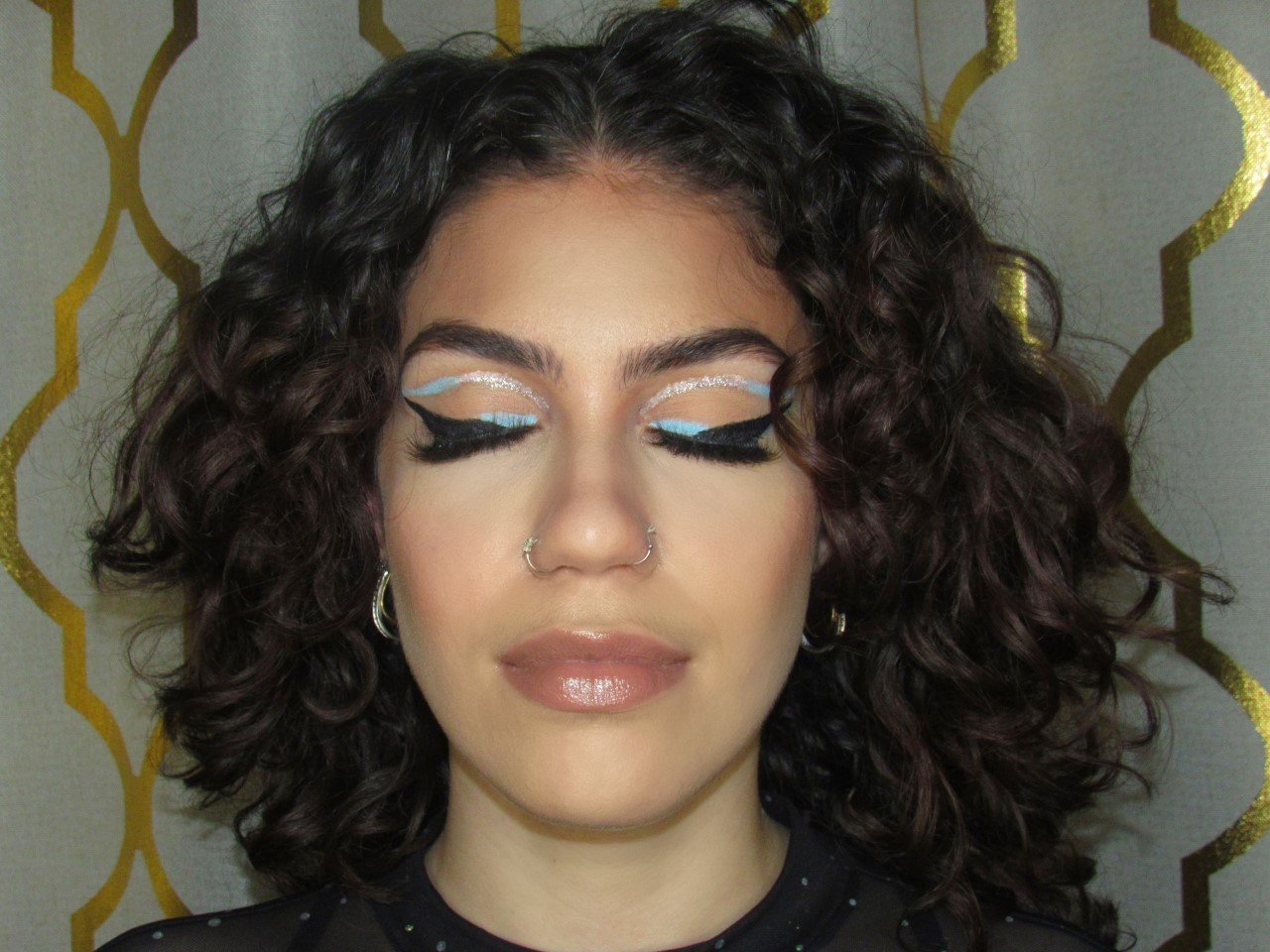 When Lisa was creating the look with gold flakes, she was so excited to do the eyebrow blocking method. She said that the first time that she tried this was Halloween 2021 when Lisa created a look inspired by Dr. Facilier from Disney’s The Princess and the Frog. “I absolutely loved the technique so I decided to do it again for two assignments in the Advanced Makeup course. I actually used Got2B glue to keep my brows down. I then put setting powder on them followed by foundation. Then, I put the gold flakes on the part of the brow that was covered up. With the look of the spikes, I once again did the brow blocking technique and added lash glue to the spikes to make them stay in place, along with gold flakes.”“My advice for future or aspiring students is just go for it! You will love the experience!”