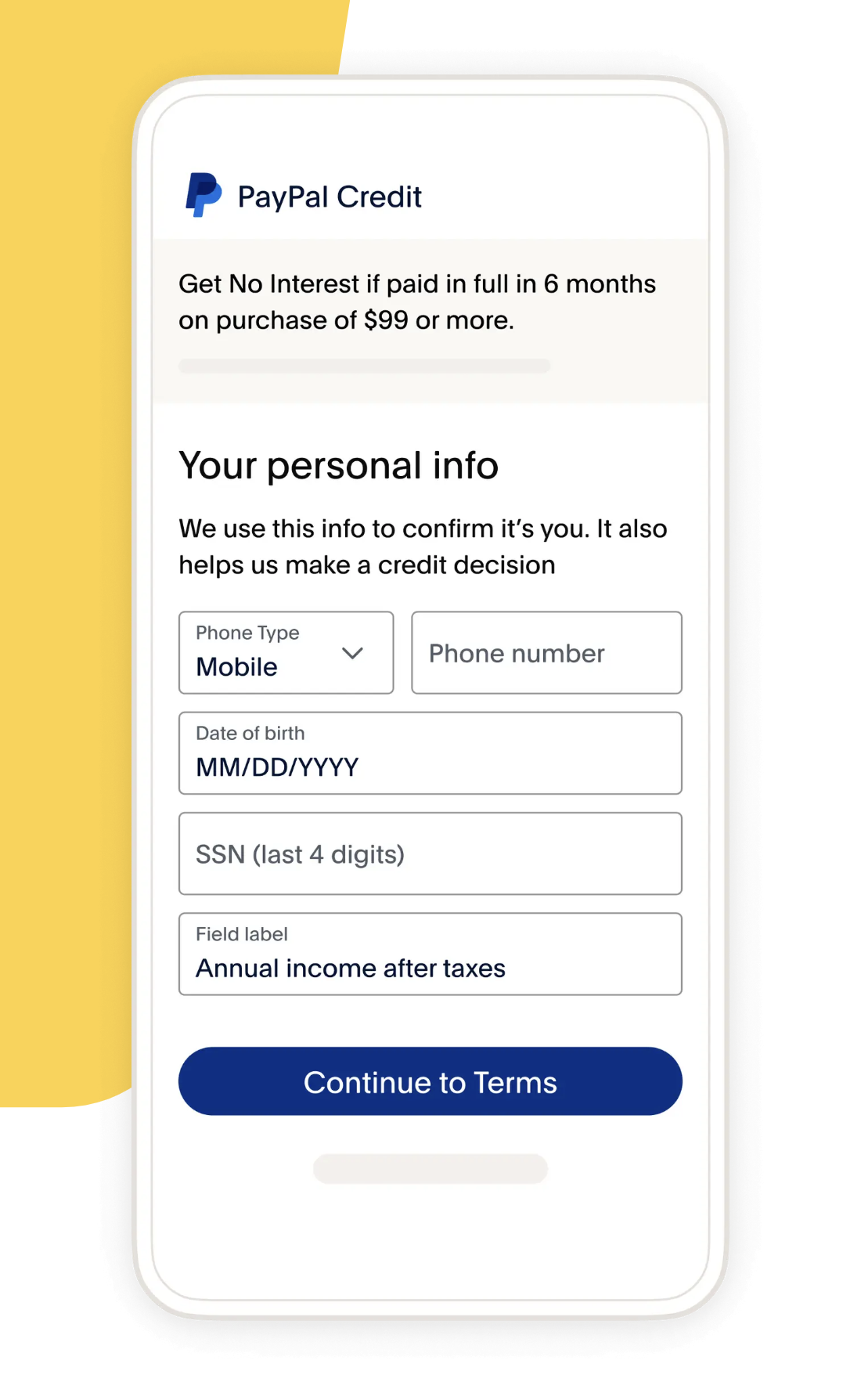 Shop with PayPal Credit’s digital, reusable credit line to get No Interest if paid in full in 6 months on purchases of $99+. Seriously.
